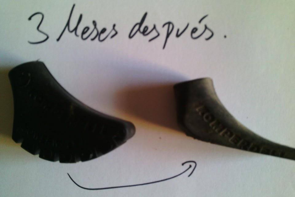 ¿que es el sensor de codo?… Generalmente cuando vemos que le sale un agujero por el desgaste (se puede ver una arandela metálica que protege el taco de la punta del bastón), yo uso el sensor del codo, es decir, si me empieza a molestar es que no está amortiguando.